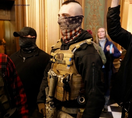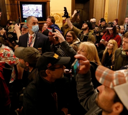 عشرات المسلحين يقتحمون برلمان ولاية ميشيغن الامريكية و يطالبون بإلغاء حظر التجول
