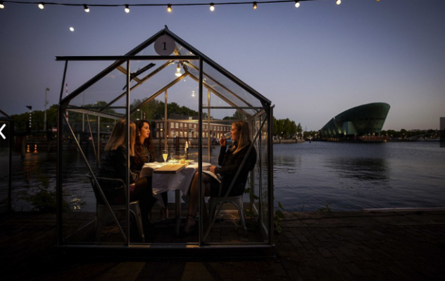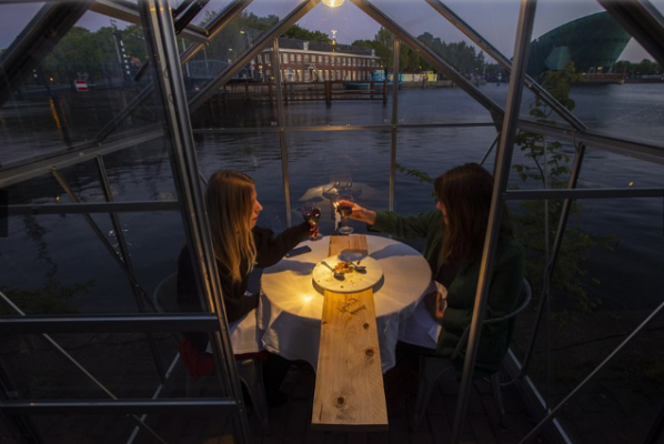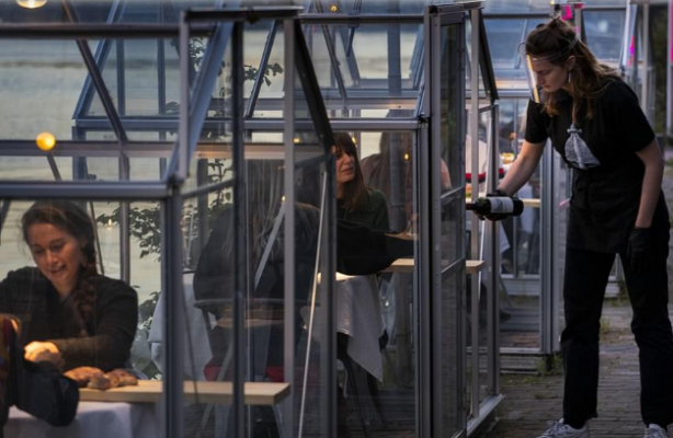 شاهد.. مطعم هولندي يبتكر طريقة للتباعد الاجتماعي