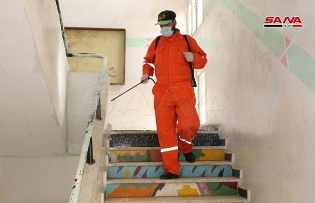 من عمليات تعقيم المدارس في دمشق ودرعا لاستقبال طلاب امتحانات الثانوية العامة بكافة فروعها غداً