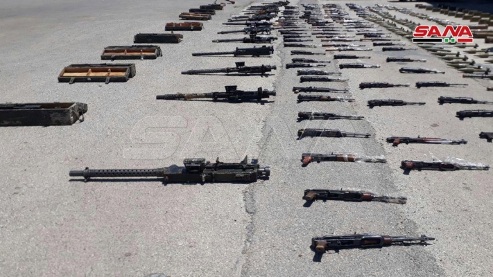 بالصور: الجهات المختصة تعثر على كميات كبيرة من الأسلحة والذخائر من مخلفات الإرهابيين بريف حلب الشمالي