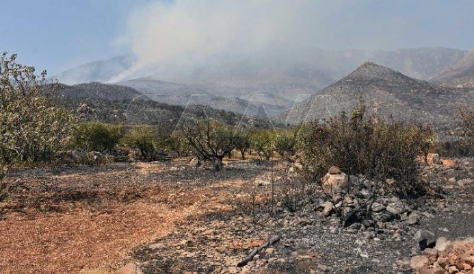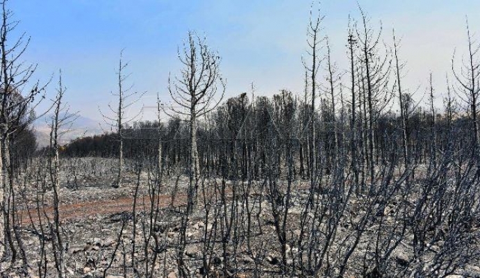من الخسائر التي ألحقتها الحرائق بالثروة الحراجية في ريف حماه الغربي