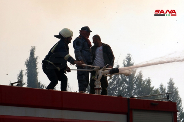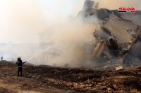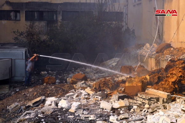 من الأضرار التي خلفتها النيران في مبنى مستودعات المؤسسة العامة للتبغ