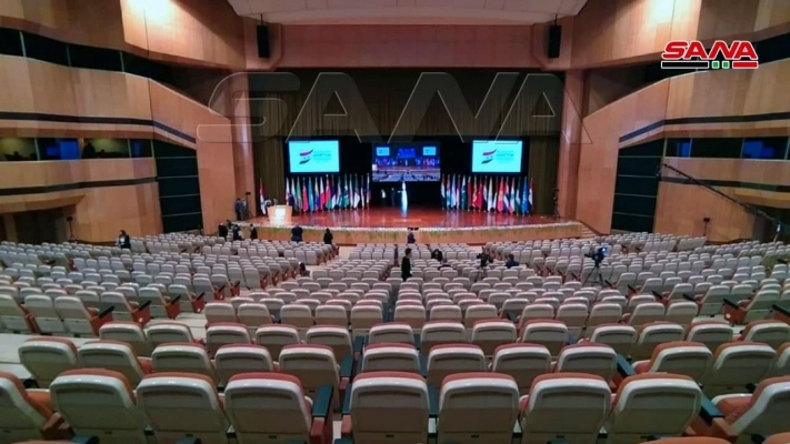 من التحضيرات لافتتاح المؤتمر الدولي حول عودة اللاجئين في قصر الأمويين