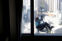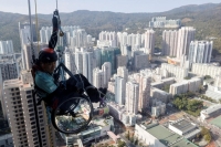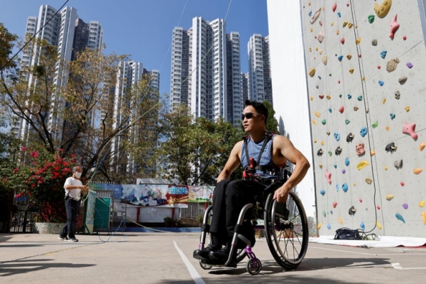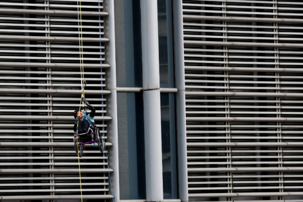 بـكرسي متحرك.. صيني يتسلق ناطحة سحاب