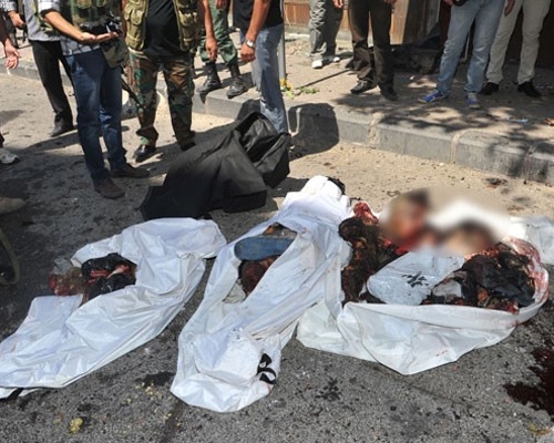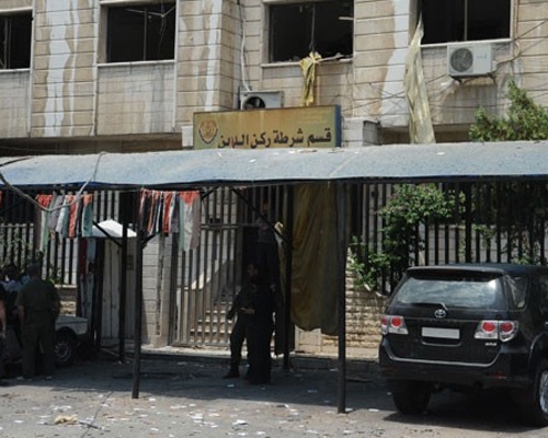 إرهابيين انتحاريين من جبهة النصرة حاولوا دخول مبنى قسم شرطة ركن الدين وفرع الأمن الجنائي بدمشق