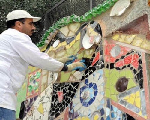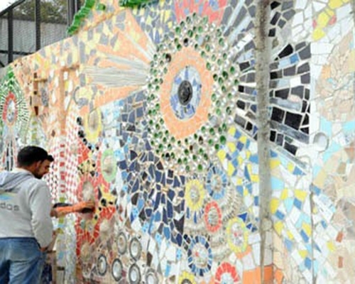 تزيين أسوار المدارس بالنفايات الصلبة ظاهرة فنية تحولها إلى لوحات جميلة