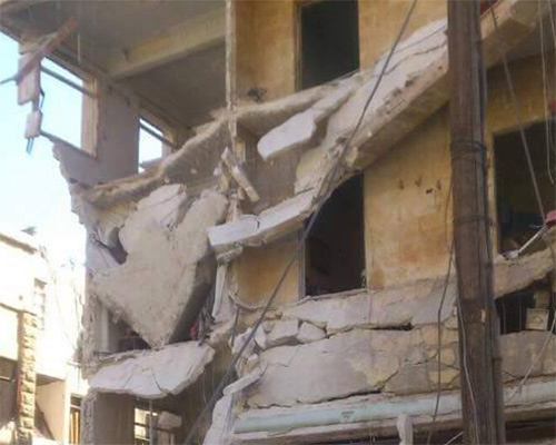 اثار الدمار نتيجة سقوط القذائف في مدينة الباب بحلب