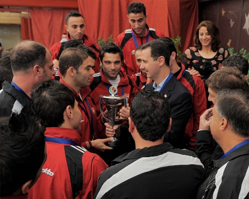 الرئيس الأسد يزور نادي الاتحاد بحلب مهنئا بفوزه في كأس الاتحاد الآسيوي بكرة القدم