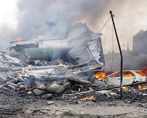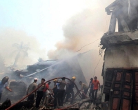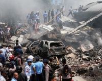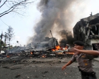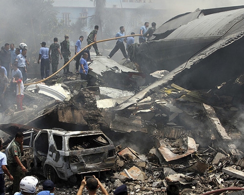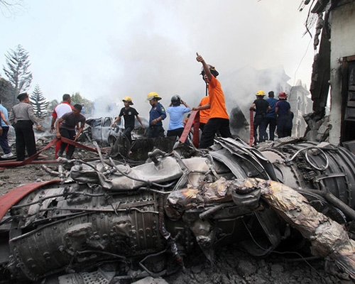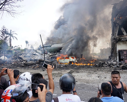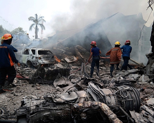 إندونيسيا.. لقطات من موقع سقوط طائرة عسكرية على منطقة سكنية