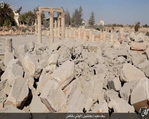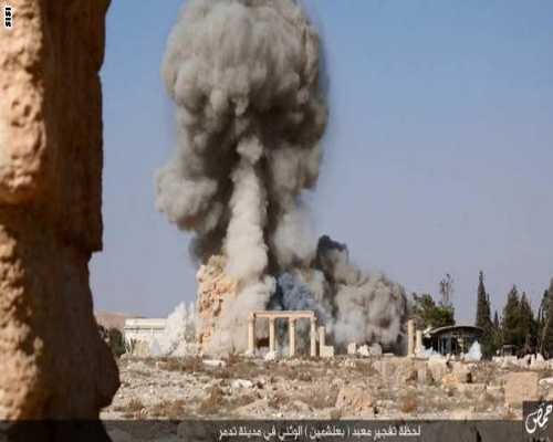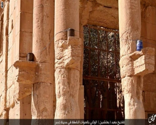 داعش ينشر لقطات لعمليات تفخيخ وتفجير معبد بعلشمين في تدمر