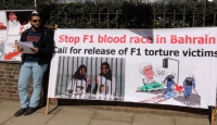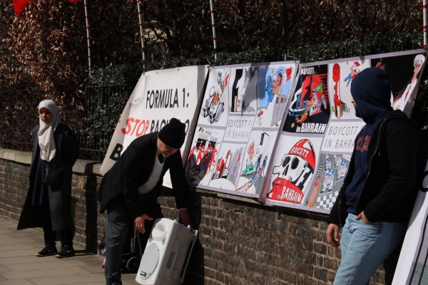 تظاهرات بلندن ضد اقامة المنامة سباق الفورمولا ـ1