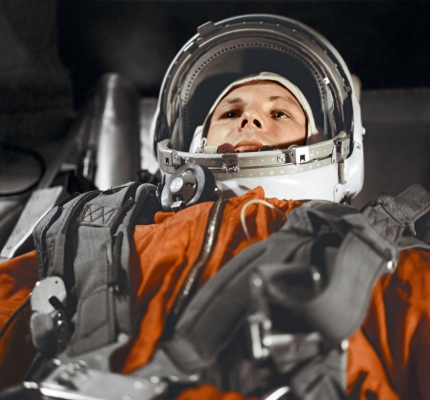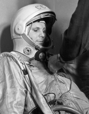 رائد الفضاء الروسي يوري غاغارين قبيل انطلاق مركبته إلى الفضاء
