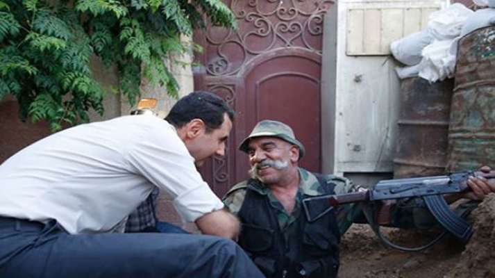 الرئيس الأسد خلال تناوله الإفطار مع أبطال الجيش العربي السوري والقوات المسلحة في مطار مرج السلطان