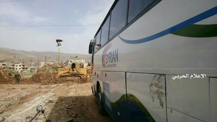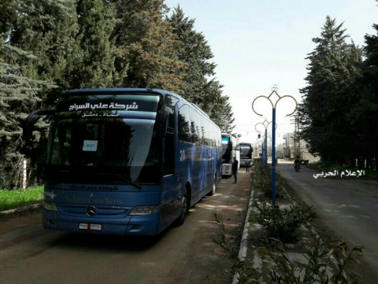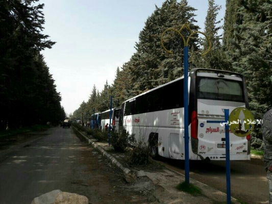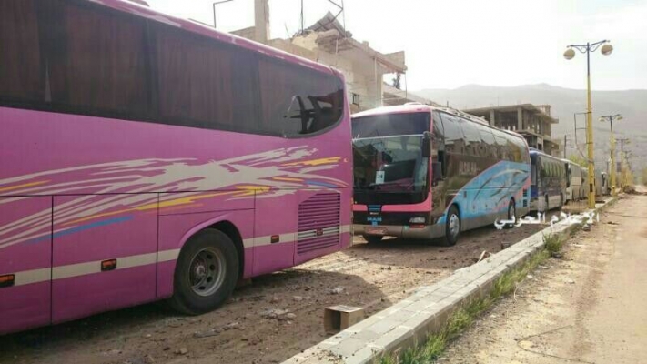 بالصور .. تجمع 92 حافلة في منطقة الزبداني-مضايا في ريف دمشق