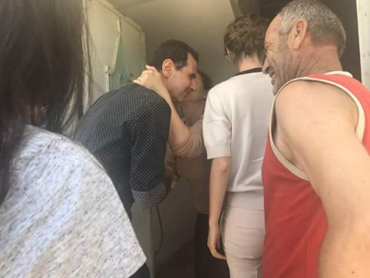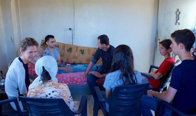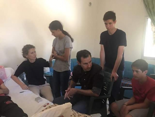 الرئيس الأسد وعائلته في زيارة لجرحى الجيش في ريف حماه