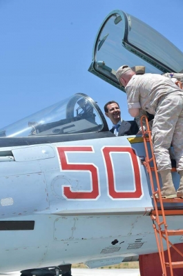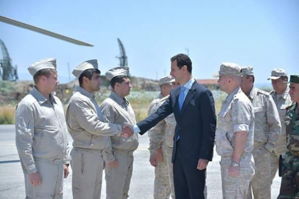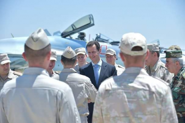 الرئيس الأسد يتفقد قاعدة حميميم العسكرية وفِي استقباله الجنرال رئيس هيئة الأركان الروسي