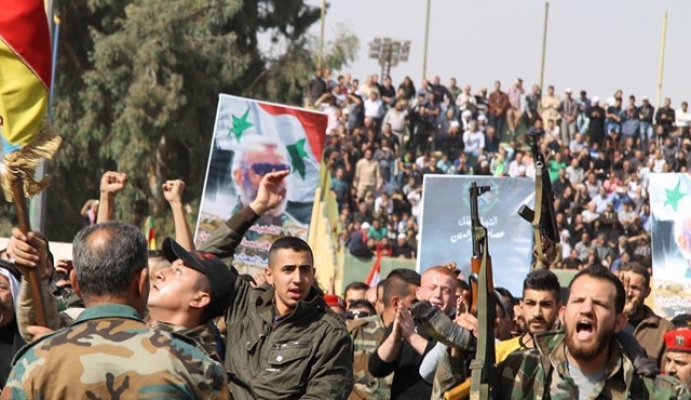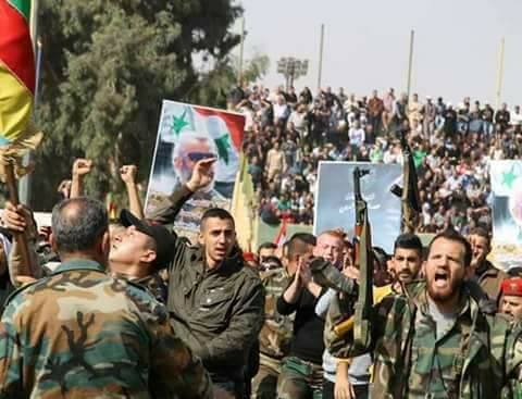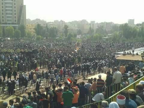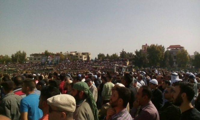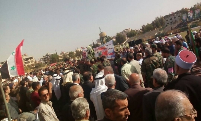 من تشييع الشهيد اللواء عصام زهر الدين في الملعب البلدي بالسويداء