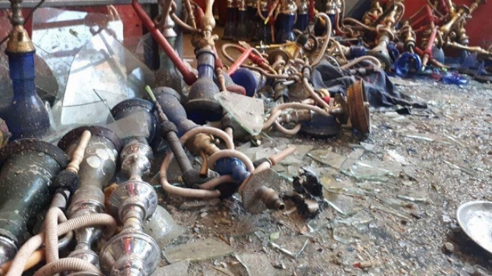 الأضرار الناجمة عن سقوط القذائف التي أطلقتها المجموعات المسلحة اليوم على منطقة الصالحية بدمشق