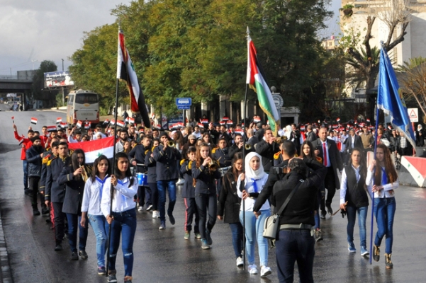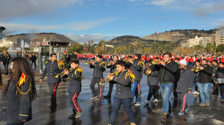 مسير كرنفالي للطلاب المشاركين في التصفيات النهائية للأولمبياد العلمي السوري
