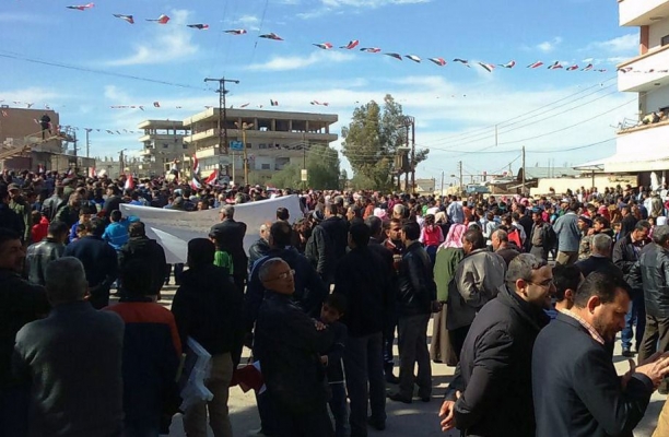 مسيرة في بلدة الغزلانية بريف دمشق دعماً لعمليات الجيش_السوري في #الغوطة_الشرقية لدمشق
