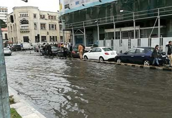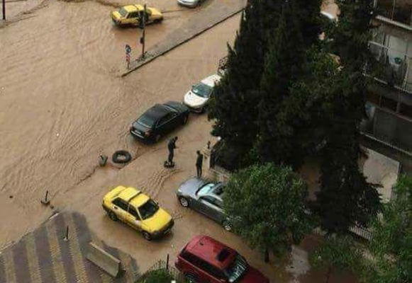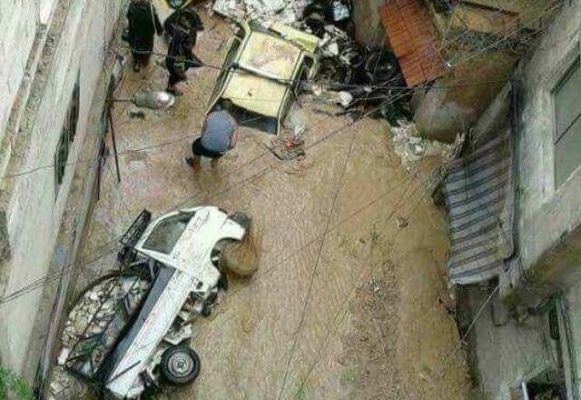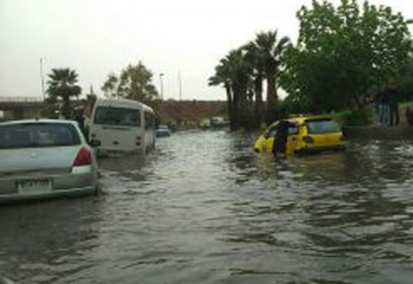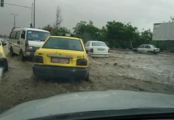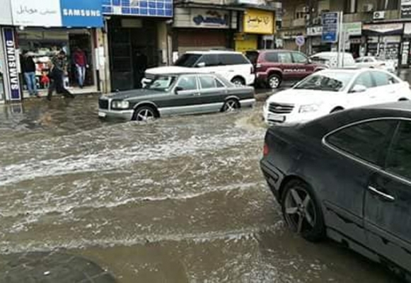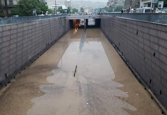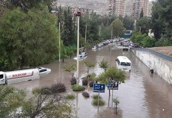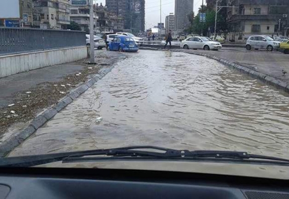 سيول في شوارع دمشق نتيجة العاصفة المطرية