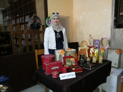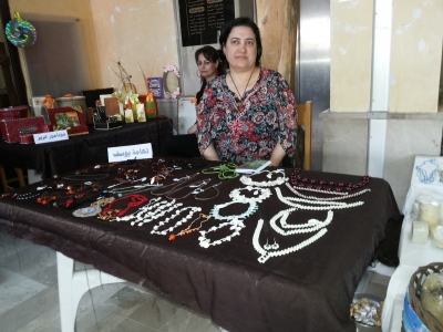 أما جناح الأعمال اليدوية فكان له رونق خاص بما قدمته السيدات من أعمال جميلة وزاهية تظهر الحس الجمالي والذوق الفني الرفيع لدى المرأة، فالسيدة تهامة يوسف تنتج الإكسسوارات التزيينية المختلفة التي تستخدمها المرأة، وترى بأن الكثير من النسوة لا تستطيع شراء المجوهرات بسبب الغلاء الفاحش لذلك يمكن الاستعاضة عنها بهذه الإكسسوارات،وتصنع أيضاً الزعتر الغني بالمكونات الغذائية العالية ، إضافة لصابون الغار وزيت الزيتون مع إضافات لمواد أخرى حسب الاستخدام للوجه أو للشعر أو للجسم، وترى بأن المشاركة بهذه المعارض هي تؤمن نافذة للبيع ولتعريف الجمهور بالمنتجات والأعمال اليدوية المختلفة ، وتساهم في خروج المرأة من الحياة الرتيبة ومشاركتها في الحياة العملية ،كما لذلك دور في إبراز المشغولات اليدوية السورية التي ترتبط بالثقافة والتراث السوري.