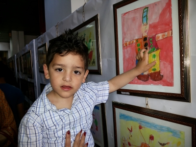 وكان الطفل أكرم فحام 4 سنوات أصغر طفل مشارك ، رسم لوحة لجندي ، وأغلب لوحاته كما قالت والدته هي تعبر عن الجيش والحرب والمعارك ، وهي تعكس مدى تأثر الأطفال بالأزمة وما يسمعونه ويرونه بوسائل الإعلام .