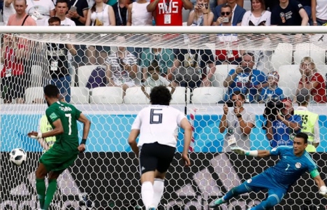 انتهت فترة النشاط المصري سريعاً وعاد الاستحواذ إلى المنتخب السعودي الذي انطلق لاعبوه يميناً ويساراً مع تراجع دفاعي في خطة المدرب الأرجنتيني هيكتور كوبر ، واحتسب الحكم ضربة جزاء للمنتخب السعودي بعد أن لمست الكرة يد أحمد فتحي ليهدرها فهد المولد في الدقيقة 41 بتصدي رائع من عصام الحضري الحارس القدير.