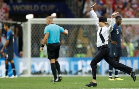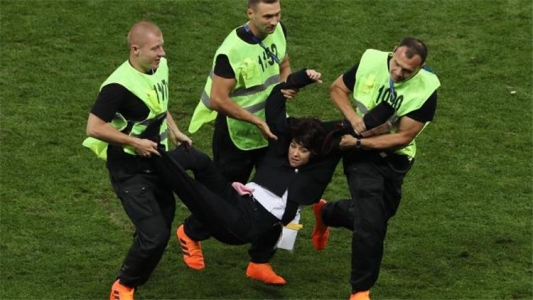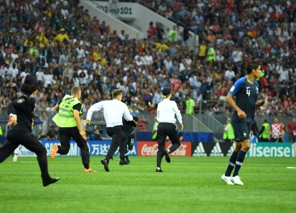اقتحم أربعة أشخاص ملعب لوجينكي في موسكو الذي يستضيف المباراة النهائية لكأس العالم لكرة القدم بين فرنسا وكرواتيا اليوم الأحد.