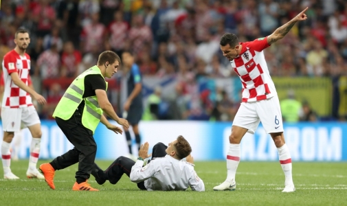 ودفع ديان لوفرين مدافع كرواتيا أحد الأشخاص قبل أن يتولى الأمن الأمر ويخرج الأشخاص الأربعة.