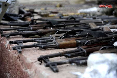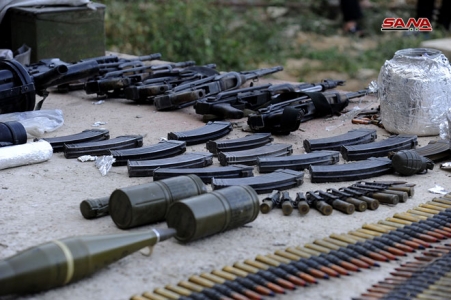 عثرت وحدات من الجيش و القوات المسلحة على أسلحة و ذخائر بعضها أمريكي في بلدة يلدا شرق دمشق و فيما يلي بعض الصور التي وزعتها وكالة سانا.