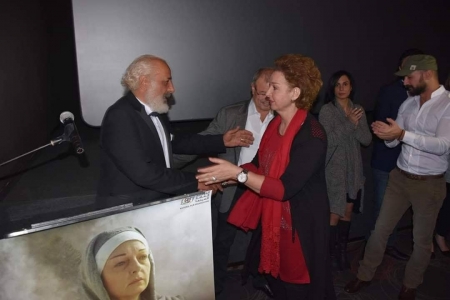 المخرج أيمن زيدان: أنا اعيش بالشحنة الشعورية ولست مخول أن أقيم فلمي، أردت أن يكون فلم صادق وسعيت إلى ذلك وعبرت عن كثير من الحالات في كتاباتي، كنت أريد أن أكون وفيا للمرأة السورية في الحرب وأرجوا أن أكون وفقت في ذلك من خلال تقديم ايقونة من الصبر على الجرح وايقونة من الأمل، والمرأة السورية هي ايقونة الصبر رغم جميع الأوجاع.