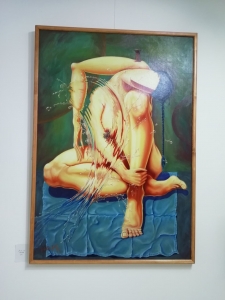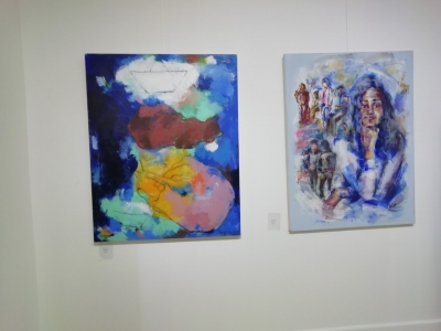 الفنان الدكتور عبد الحكيم الحسيني قال : بالفعل هو أسبوع الفن التشكيلي والذي تم بتوجيه من وزارة الثقافة ،كان فرصة لكثير من الفنانين للقاء وتبادل وتداول الأراء والخبرات، حيث شهدت اللاذقية افتتاح العديد من المعارض في صالات هيشون ،نقابة الفنانين، مركز الفنون التشكيلية، الحكمية ...وغيرها ، أما مشاركتي فهي مستوحاة من بيئة المناطق الشمالية ، الفرات والجزيرة ،وتضمنت عناصر وألوان للسجاد بشكل تجريدي إضافة لمجموعة من وجوه النساء، بدءً من وجه الملكة زنوبيا ووجوه في المرحلة الحديثة تظهر بحالة حالمة، وتغلب على اللوحة ألوان الأصفر والأزرق .