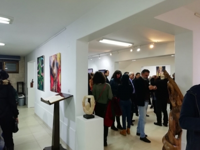 كانت الصالة تغص بالفنانين والزوار المهتمين بالفن والذين تلاقوا للتمتع ورؤية آخر الأعمال الفنية وتبادل أطراف الحديث وتذكرني هذه اللقاءات بالصالونات الأدبية قديماً والتي كانت تشكل فرصة للقاء والحوار والحديث في كافة جوانب الحياة ، فرتم الحياة السريع والمتسارع واللهاث وراء التحصيل المادي ولقمة العيش جعل فرص اللقاء بين بعض الناس قليلة بل تكاد تكون نادرة والذي يتخوف الكثيرون من "غربنة " حياتنا، أي انتقال عدوى الحياة الغربية إلينا، لذلك هناك تكمن أهمية اللقاءات والتواصل في هذه المعارض والنشاطات الفنية المختلفة.