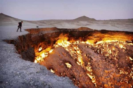 التقط المصور اليساندرو يبلجيجوسو الصور المذهلة لحفرة الجحيم الموجودة في صحراء كاراكوم في تركمانستان التي لم تنطفئ نيرانها لأكثر من 40 عاما.