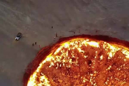 نشر موقع ذا صن لقطات جوية مذهلة لحفرة مشتعلة بالنيران لأكثر من 40 عاما والمعروفة بـ”بوابة الجحيم”.