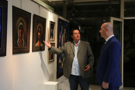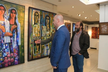 زار وزير السياحة المهندس محمد رامي رضوان مرتيني معرض الفنان التشكيلي علي حسين المقام في غاليري ألف نون بدمشق تحت عنوان "حلم" بحضور الفنان التشكيلي بديع جحجاح.