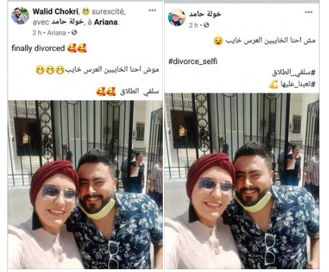 أثار احتفال شابين تونسيين بطلاقهما عبر نشر صورة "سيلفي" جمعتهما مباشرة بعد نهاية جلسة الطلاق، جدلاً واسعاً في تونس.