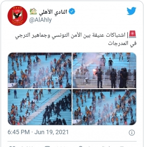 وأظهرت صور نشرها الحساب الرسمي للأهلي على مواقع التواصل الاجتماعي، مغادرة لاعبيه للملعب خلال عمليات الإحماء، والدخول سريعا لغرفة خلع الملابس بسبب تعرضهم للاختناق وعدم قدرتهم على التنفس بسبب إطلاق الأمن التونسي قنابل الغاز المسيل للدموع في المدرجات.