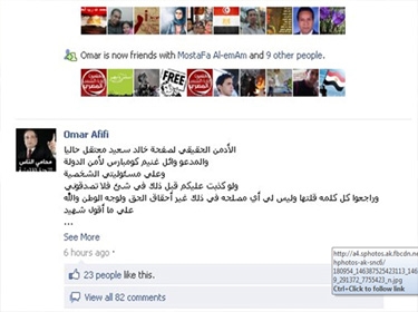 والعجيب أن وائل في حسابه على تويتر يترجم اسم "خالد سعيد" الذي قتلته الشرطة كما قيل, إلى كلمة "سعادة خالدة".