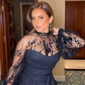 أطلت الفنانة المصرية نيللي كريم في حفل ختام مهرجان القاهرة السّينمائي بدورته الـ 43، بفستان باللون الأسود طويل بأكمام من الدانتيل الأسود الشفاف.