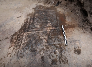 اكتشف فريق تنقيب من المديرية العامة للآثار والمتاحف ودائرة آثار ريف دمشق، لوحة فسيفسائية أبعادها 3.9 × 2.4 في قرية ماعص بمنطقة قطنا في ريف دمشق.