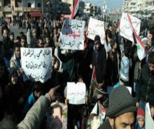 اعتصام اهالي حي الزهراء في محافظة حمص و المطالبة بإقالة المحافظ طلال البرازي و امين فرع الحزب صبحي حرب