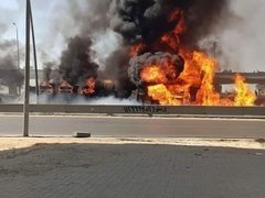 اشتعال صهريج وقود وعدد من السيارات في حادث على إحدى الطرق بمصر