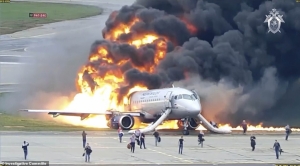 شاهد.. لقطات مرعبة لإنزلاق طائرة ركاب روسية و تمكن بعض الركاب من الفرار ؟!